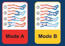 - Modus B: Der Programmablauf sieht das Aufblasen von zwei Kammern gleichzeitig vor und simuliert die Funktion der überlappenden Leggings